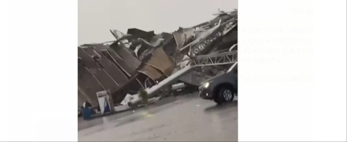Nas imagens que estão sendo compartilhadas nas redes sociais, os moradores se assustam com a força do vento que não teve perdão e destruiu a estrutura superior do estabelecimento. A velocidade é tamanha que o teto acaba caindo sobre um imóvel em que a conveniência do posto está instalada.