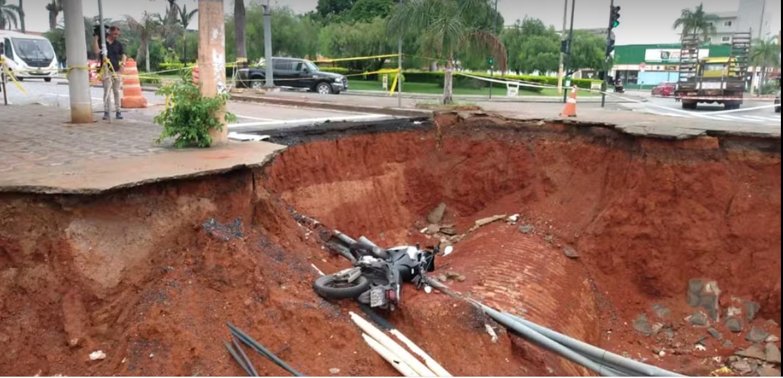 Segundo a PM, as câmeras do Olho Vivo flagraram o momento em que um motociclista caiu dentro do buraco, que estava sinalizado com cones e faixas. Depois da queda, por volta das 3h30, ele saiu do lugar e correu em direção a postos de combustíveis.